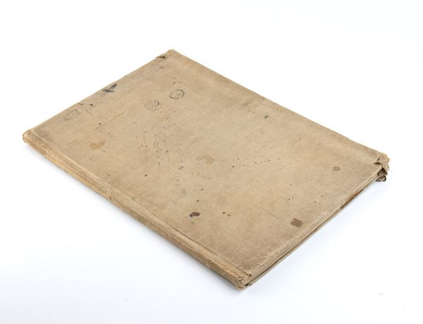 drawings in black ink, watercoloured, within a beige cloth album, in folio