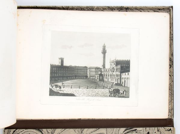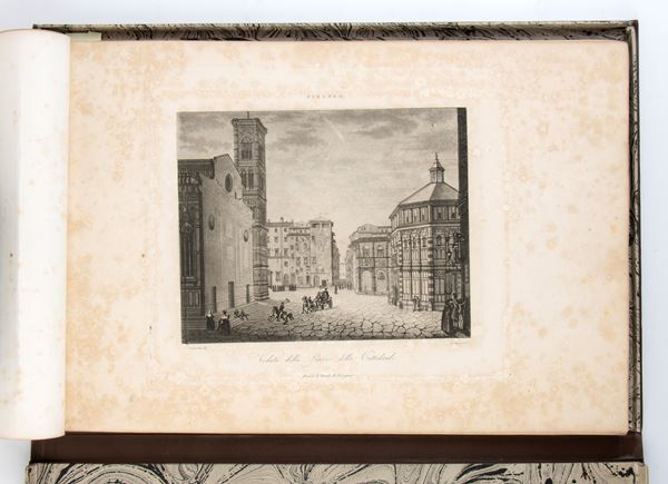 Album with 27 plates depicting views of Florence, in etching and aquatint, by various artists. Fine impressions, generally in very good condition except for a few stains. Album in leather case.