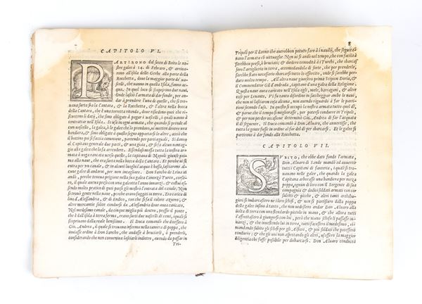Rare first dated edition of Alfonso de Ulloa's tale of the Siege of Tripoli (1551), Battle of Djerba (1560) and the Great Siege of Malta (1565) in the context of the war between the great Christian Alliance and the Ottoman Empire for control of the Mediterranean. The Ottomans attacked and conquered Tripoli (now Libya) in 1551, controlled from 1530 by the Christian military order known as the Knights Hospitaller. A powerful naval force was sent to retake Tripoli in 1560, but was defeated near the island of Djerba. The culmination of the conflict was the Great Siege of Malta, when the Ottomans unsuccessfully attacked the island defended by the Knights Hospitaller, whom they had previously defeated in Tripoli. It specifically tells of the expedition launched by King Philip II on the coasts of Africa , with the aim of retaking Tripoli from the Ottomans and putting an end to the raids led by Piyale Pasha and Dragut from the Balearic Islands, conquered by the Ottoman fleet in 1558. The second part of the book describes the attack launched by the Turks on the island of Malta five years later and the siege that followed, although they were eventually repelled by Spanish troops. Finally, the book contains a description of the island of Malta and a list of the knights who died during the siege of Malta in 1565.