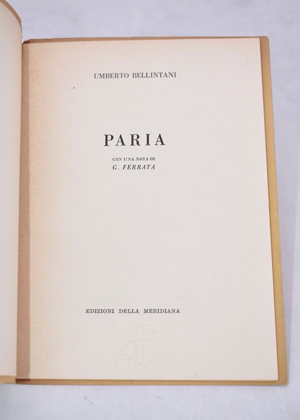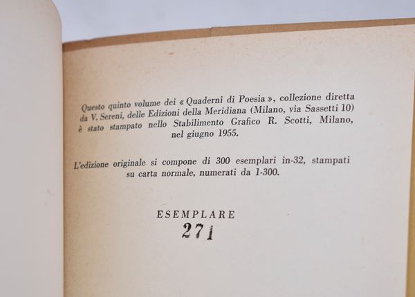 Prima edizione, esemplare numerato 271/300. Con una nota di G. Ferrata