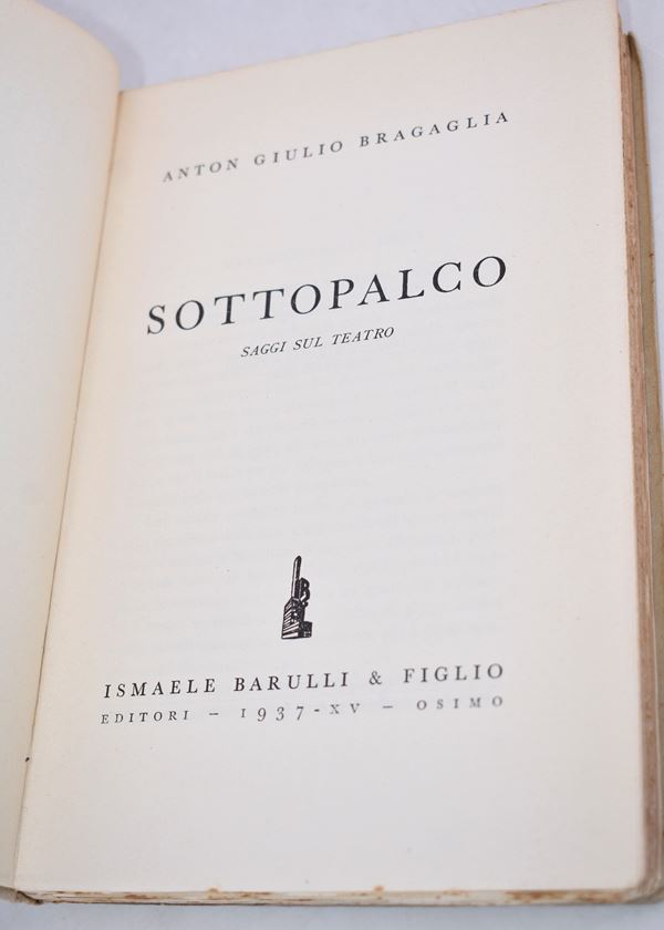 BRAGAGLIA, Anton Giulio. SOTTOPALCO. SAGGI SUL TEATRO. 1937.
