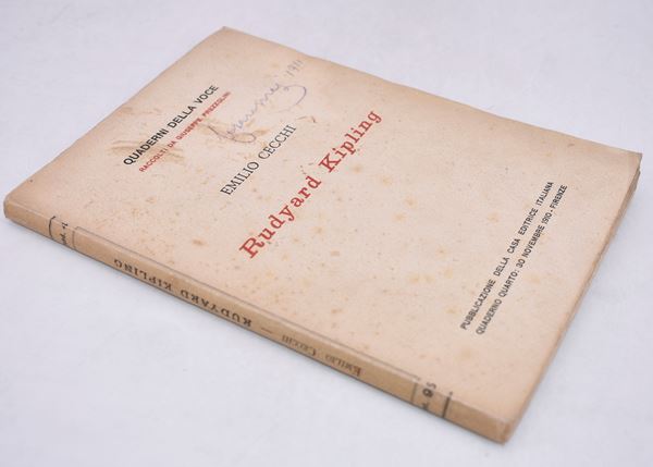 Prima edizione, collezione Quaderni della Voce. Edizione priva di frontespizio, con un ritratto di Kipling f.t. Esemplare con  segni di matita nel testo, una firma di possesso al piatto.