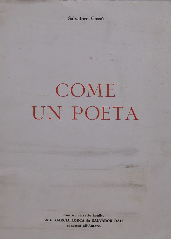 Prima edizione, tiratura di 500 esemplari n.n. Raccolta di poesie “con un ritratto inedito di Garcia Lorca da Salvador Dalì concesso all'Autore”.