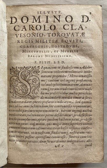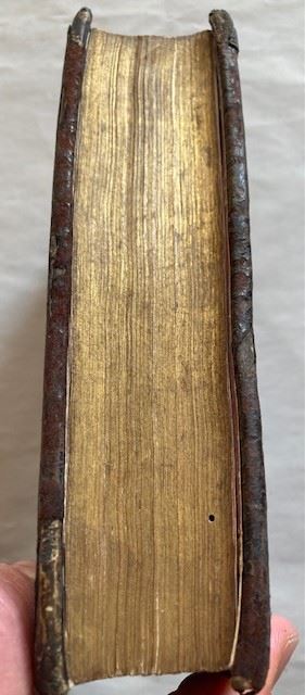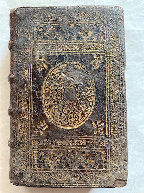 8vo (the leaf 155x95 mm), nice contemporary binding in dark brown calf, covers richly gilt to a panel design (incorporating floral rolls and tools, fleurs-de-lys, and stars) with central lozenge, spine gilt in compartments, golden edges, later marbled endpapers; binding worn with loss of gilding on boards and spine; inscriptions of Jean Baptiste Peperstraete to title and rear endpaper (dated 1696), modern book label of L. Froissart (faint ink doodle of man to rear endpaper, small wormhole/track to blank outer margins from p. 497 to end, a few light marks). Generally good. Woodcut Jesuit device to title, initials; pp. 568.