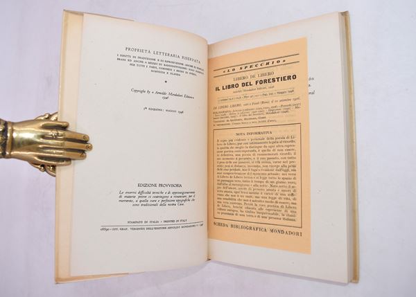 Edizione accresciuta dopo la prima del 1945, collezione Poeti dello Specchio. Con pergamino protettivo e schede bibliografiche conservate.