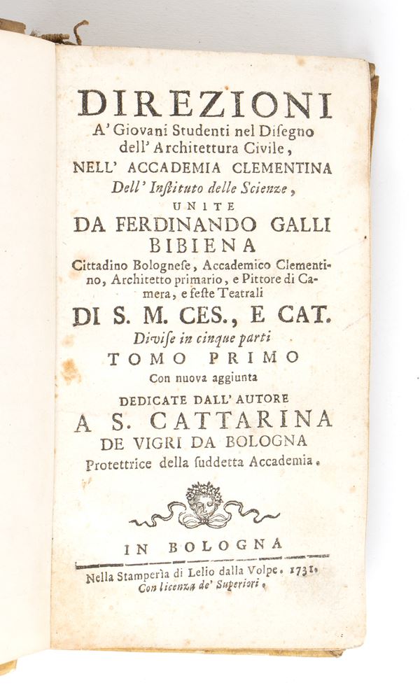 FERDIANANDO GALLI BIBIENA. DIREZIONE A GIOVANI STUDENTI NEL DISEGNO DELL’ARCHITETTURA CIVILE. Bologna 1731-32