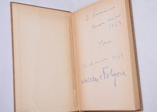 Prima edizione, esemplare con dedica all’A., e firma dell’A. al front. Legatura editoriale in piena tela con titoli in oro al dorso. Sovracoperta mancante.