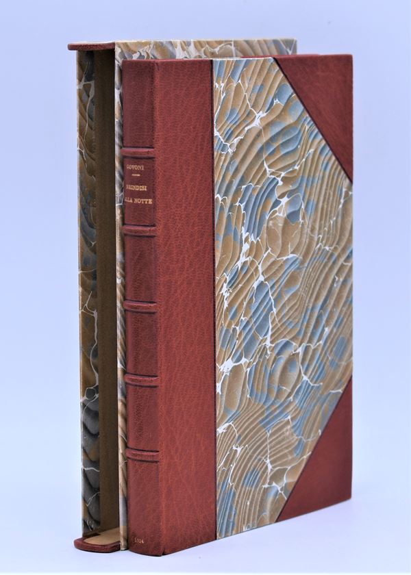 Prima edizione. Legatura artistica in mezza pelle marocchino con angoli, brossura conservata, cofanetto marmorizzato. Esemplare mancante della carta successiva all’indice.