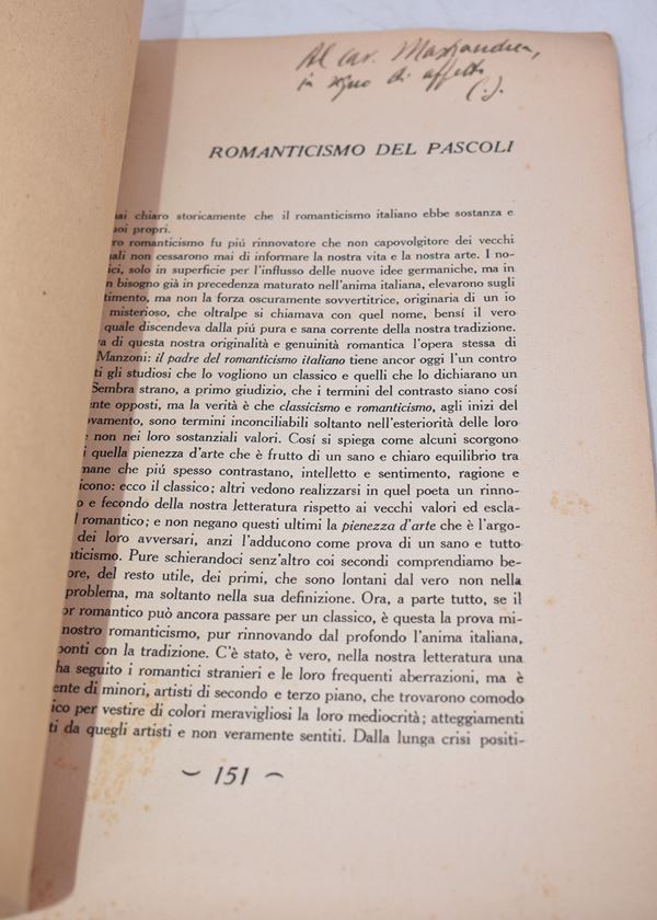 JANNACO, Carmine. ROMANTICISMO DEL PASCOLI. 1939.