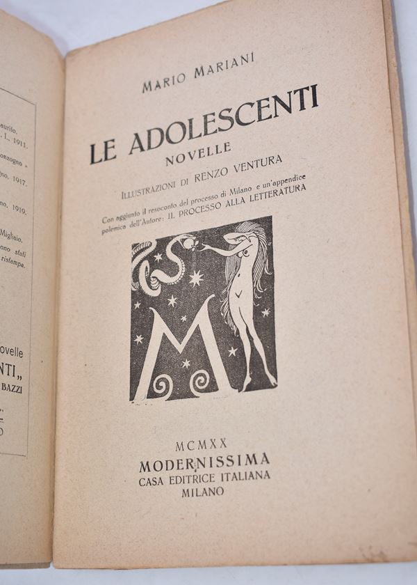 MARIANI, Mario. LE ADOLESCENTI. NOVELLE. 1920.