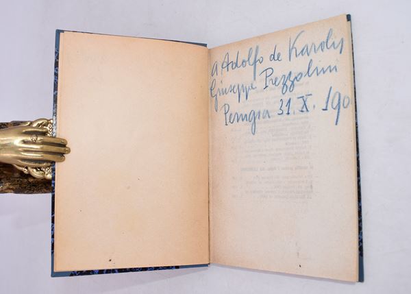 Prima edizione. Esemplare con dedica dell’autore a Adolfo De Carolis. Esemplare con le ultime 2 cc slegate. * Esemplare proveniente dalla biblioteca privata di Adolfo De Carolis.