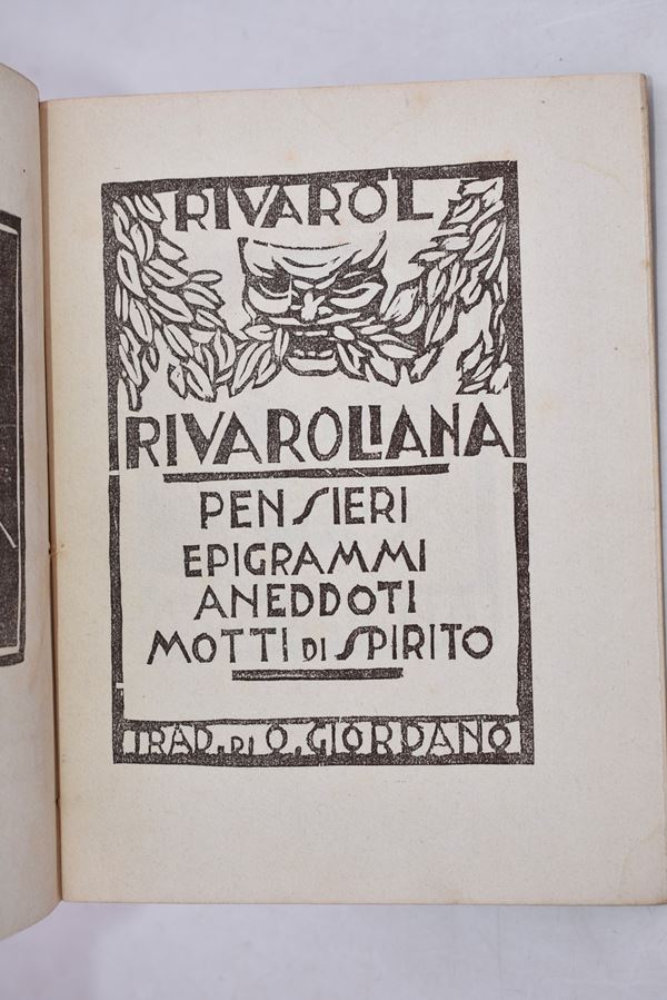 RIVAROL. RIVAROLIANA. PENSIERI, EPIGRAMMI, ANEDDOTI, MOTTI DI SPIRITO. 1920.