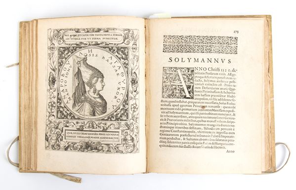 This beautiful work presents portraits of sultans, from Osman I to Murad III . The portraits were engraved by Theodore de Bry based on drawings by Hoefnagel who is said to have taken them from medals brought from Constantinople.