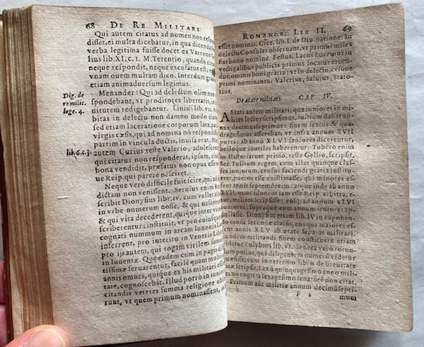 First edition of this treatise on the Roman army in antiquity by the Italian Jesuit Valtrinus (1558-1601). VD16 V-343; De Backer/Sommervogel VIII c. 430 nr. 2; Cockle Military Books, n. 582; Adams V-222; BMC STC STC German (BL London) p. 884.