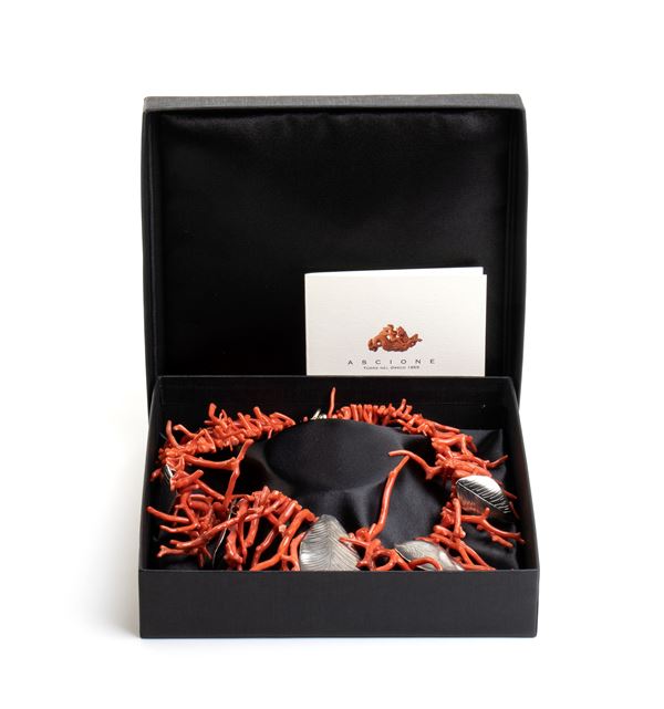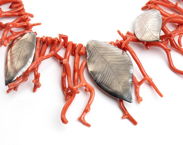 Mediterranean coral springs (corallium rubrum) with five silver leaves.