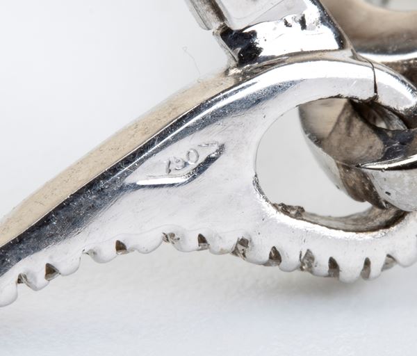 18k white gold, embellished by diamonds and two Australian pearls.