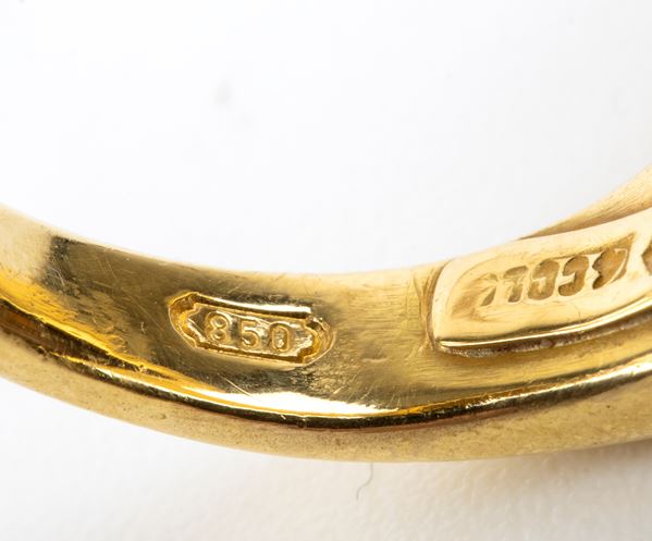 Hallmarked "850". IT size 11 - US size 6. Front part dimensions 20 x 15 mm. Weight 12.4 g.