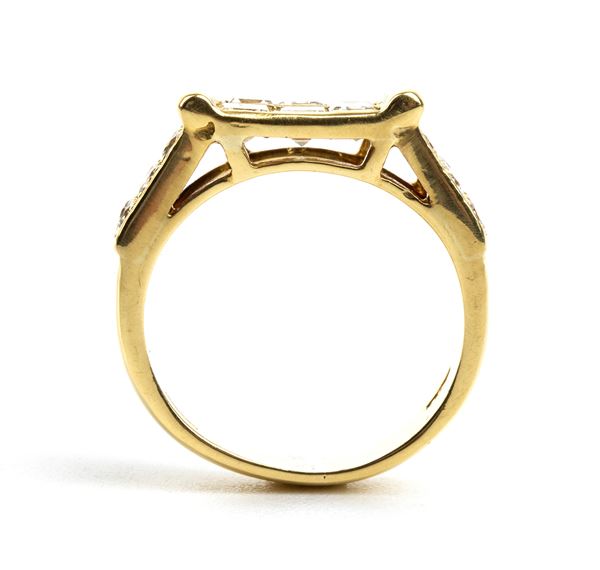 18k yellow gold, set with diamonds. N. 18 round shape brilliant cut diamonds and 6 rectangular shape step cut diamonds approx. 2.00 ct tot, E-F, IF-VVS. Hallmarked "750 - 1974 AL".