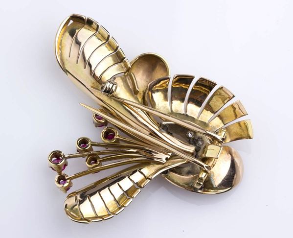 Gold brooch with rubies and diamonds - 1940s