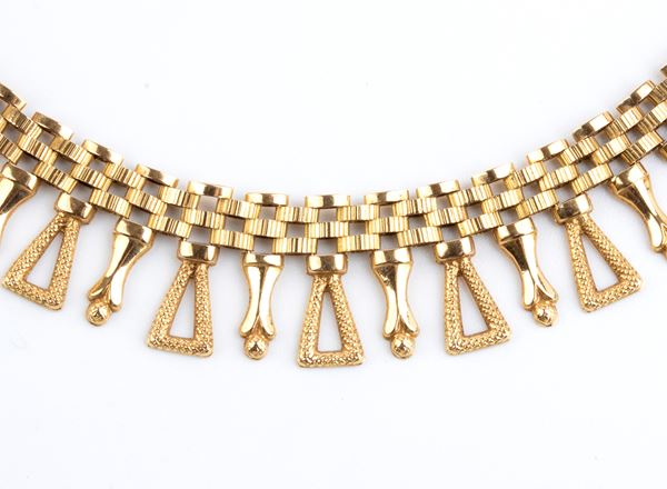 Gold necklace with geometric fringes