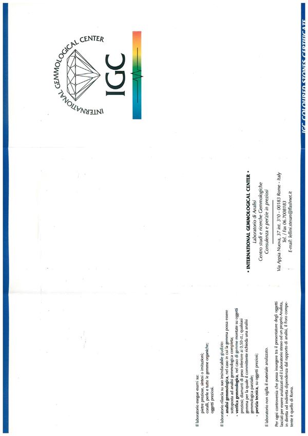 Accompanied by IGC (International Gemmological Center) jewelry report.