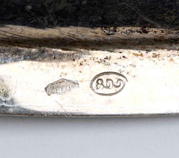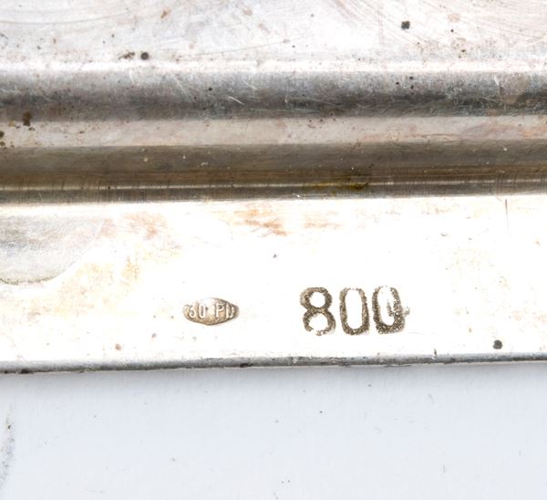 7) silver tray: dimensions 24 x 15.5 cm. Hallmarked "800".