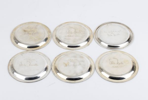 Hallmarked "800 - NICOLETTI". Engraved "Aldo Tiselli, Natale 1965, 1966, 1967, 1969, 1970".