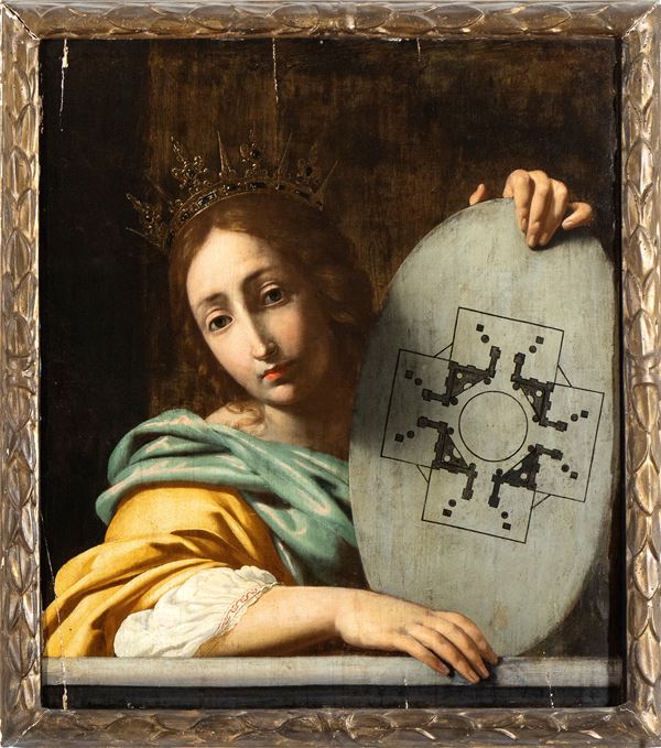 E' grazie alla puntuale definizione dell'Iconologia di Cesare Ripa (1603) che si può riconoscere nel nostro bel dipinto un'Allegoria della Magnificenza piuttosto che una più generica Allegoria dell'Architettura, come potrebbe indurre a pensare la dettagliata pianta di edificio a croce greca esibito dalla figura femminile. "Donna, vestita e coronata d'oro (...) terrà la sinistra mano sopra d'un ovato, in mezzo al quale vi sarà dipinto una pianta di sontuosa fabrica (...)": la descrizione non lascia spazio a dubbi, corrispondendo pressoché alla lettera alla composizione di questo affascinante dipinto, opera certa di Cesare Dandini come riconobbe per prima Mina Gregoria nel 1965 e confermò senza esitazioni Sandro Bellesi nella sua fondamentale monografia dedicata al pittore, sottolineando "l'effetto icastico del volto, esaltato da una bellezza quasi pietrificata nel marmo". Risultano evidenti le strette affinità formali, morfologiche e di ductus pittorico con capolavori di Cesare Dandini come l'Allegoria della pittura in collezione privata bolognese (Bellesi 1996, n. 38, pp. 89-90), l'Allegoria della Commedia nei depositi delle Gallerie fiorentine (Id., n. 53, pp. 108-9) e l'Allegoria della Commedia e della Pittura, oggi di ubicazione ignota (Id., n. 58, p. 114).