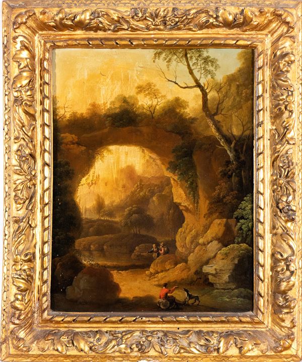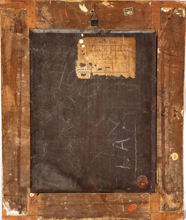 The panel bears a wax stamp on the back in the bottom right-hand corner and traces of another stamp on the back of the frame in the bottom right-hand corner.