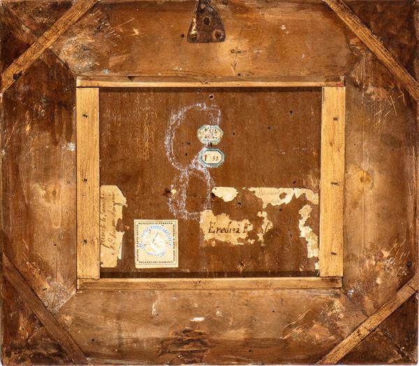 The label made it possible to identify the painting with the one exhibited in the historic exhibition "Mostra di opere d'arte antica delle raccolte private ferraresi" held in Palazzo dei Diamanti between August and September 1949. The work was published in the printed catalogue under no. 16, accompanied by the b/w reproduction, with information on measurements and provenance from the collection of Ubaldo Masotti.