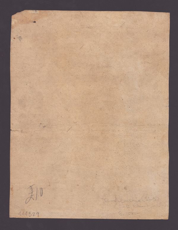 Beautiful impression on laid paper with watermark. Trimmed example. Paper uniformly oxidized, a small flaw in the upper right corner. A small hole at the top right. Trace of a barely visible horizontal crease and a very short tear on the crease. Otherwise in good condition.