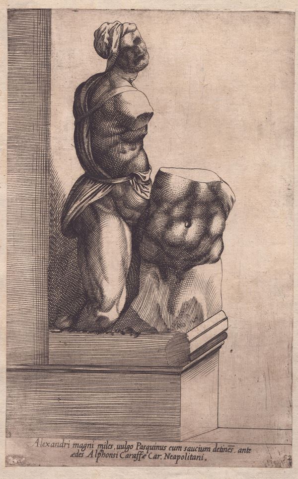 Alexandri magni miles, vuoto Pasquinus... | Acqua Traiana, vulgo Marphorius in foro boario