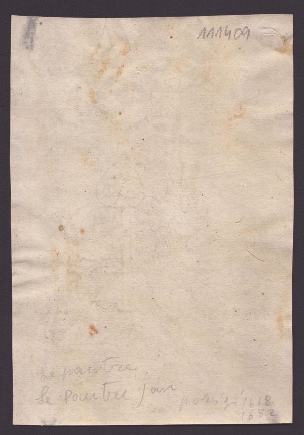 Fine, sharp impression on laid paper with watermark (large letter B with monogram CB underneath). Trimmed, in very good condition except for thinning of the paper in two places at the top.