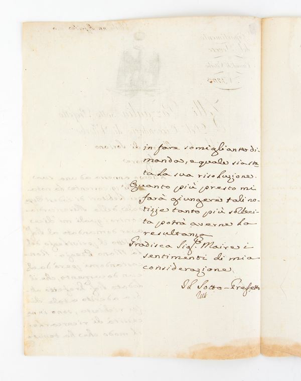 Lettera manoscritta e autografa del sottoprefetto Zelli - Pazzaglia, 1810