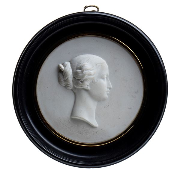 in biscuit and coeval wooden frame
