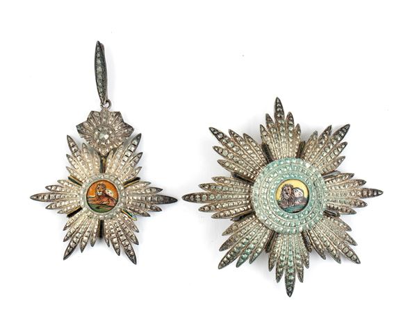 Persia, Ordine del Sole e del Leone, Gran Croce con astuccio e diploma, fine XIX, inizi XX sec.