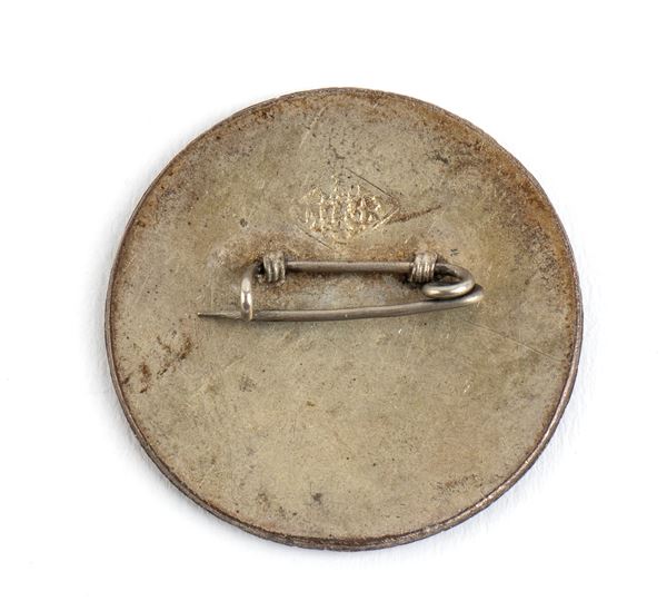 Distintivo in metallo argentato e smalti poluicromi, al verso spilla e marchio del fabbricante, in ottimo stato.