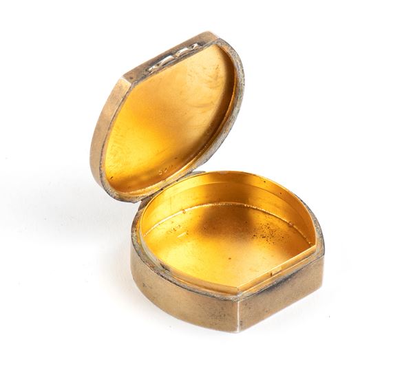 Beautiful pill box of particular shape in silver with the monogram of His Majesty Vittorio Emanuele II in blue enamel, exquisite workmanship from the late 19th century, hallmarked on the case back