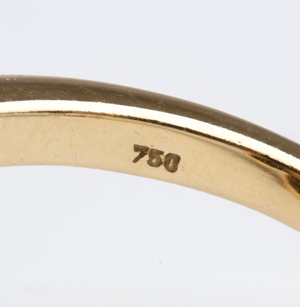 Hallmarked "750". IT size 18 - US size 8 1/2. Front dimensions 1.5 x 2 cm. Weight 10.2 g.