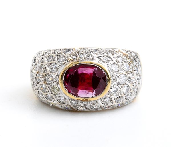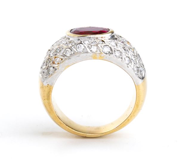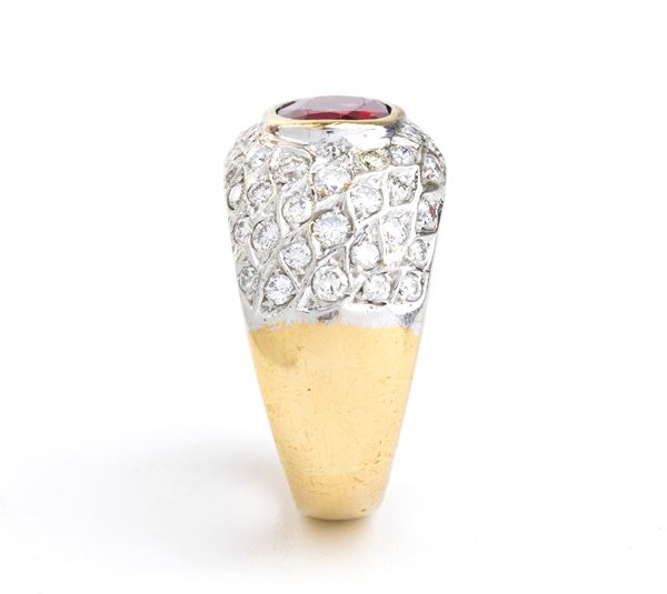 N. 01 ruby, oval shape, composite cut, approx. 1.10 ct, Origin: Siam - Thailand, heat treated.