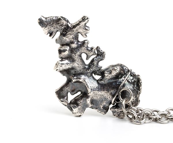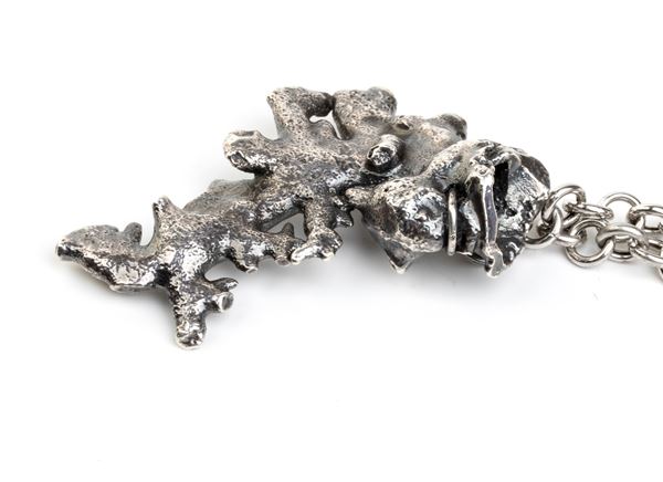 forzatina chain necklace with an electroformed coral branch pendant. ISABELLA ASTENGO designer.