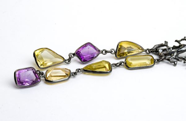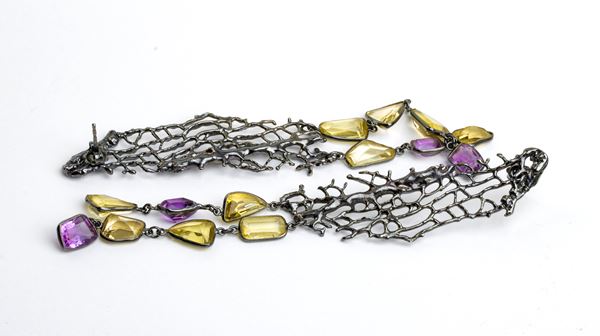 electroplated fishing net, embellished by amethysts and citrine quartz. Signed ISABELLA ASTENGO.