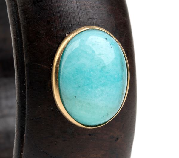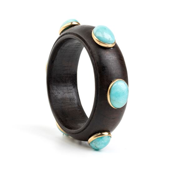 embellished with 6 cabochon cut turquoises. Signed ISABELLE ASTENGO.