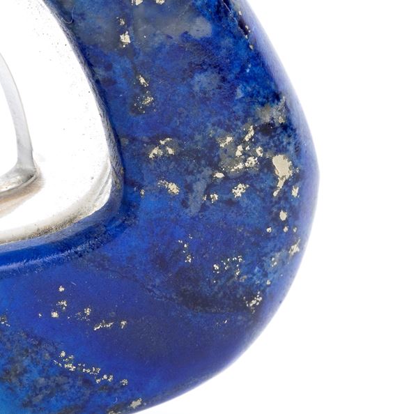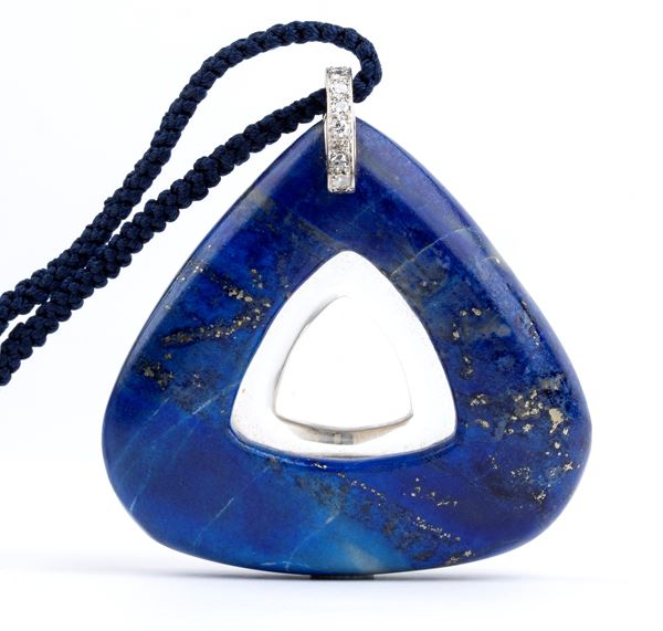 lapislazuli triangular shaped pendant with rock crystal insert, embellished by n. 12 round shaped diamonds, brilliant cut, huit-huit cut and rose cut, approx. 0.35 ct, G-H, VS.