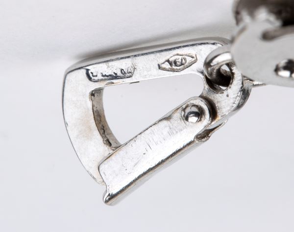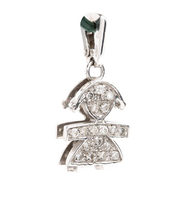 18k white gold, featuring a female kid set with n. 18 diamonds, round shape, brilliant cut, approx. 0.20 ct, F-G, VVS.