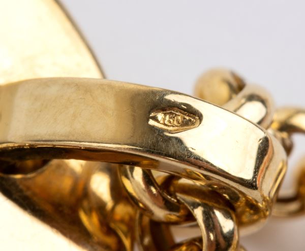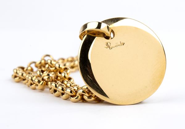 18k yellow gold, rolΓ² link chain with geometric pendant. Signed POMELLATO.