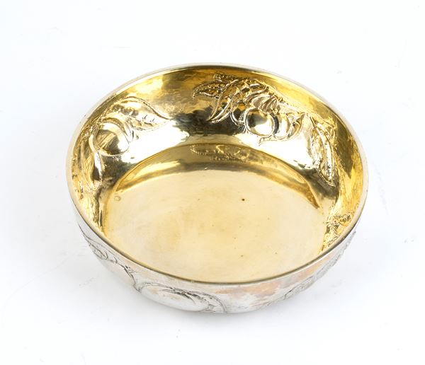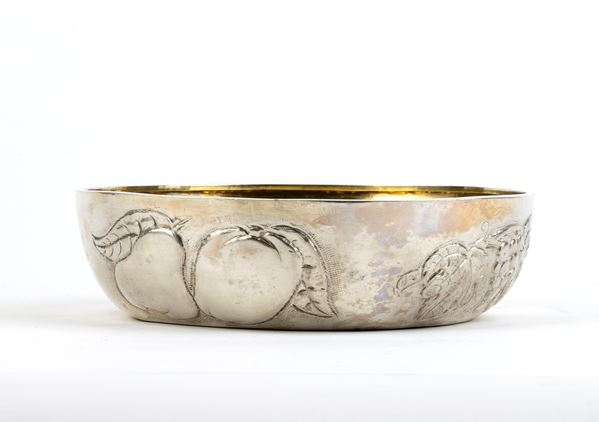 of round shape, goldplated inside, decorate with fruits and leaves motivs.