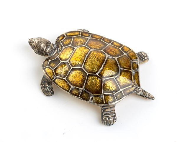 enameled in the tones of orange. 800/1000 silver, hallmarked "800 and * 1 AL" in use in Italy after 1968, silversmith CESA.