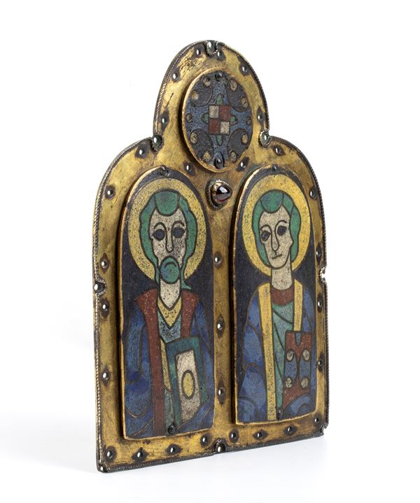 Enameled spanish plaque depicting two saints, 12th - 13th century