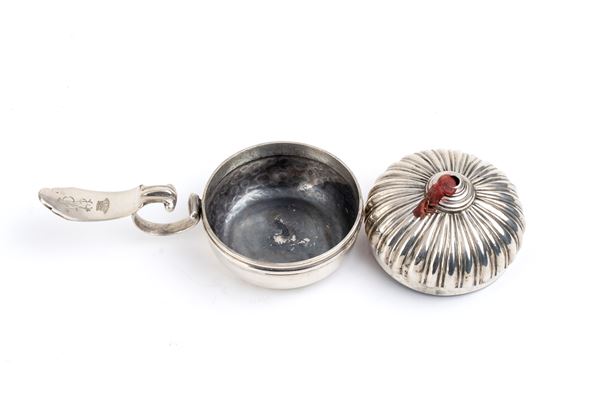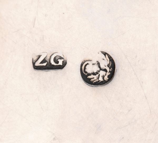 of circular shape with fluted lid, and central hole for wax. Hallmarked with marks in use in Venice in the 19th century.